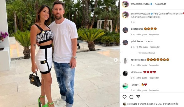 妻子安東內拉在社交網站上祝梅西生日快樂,安東內拉發了一張和梅西的合影,並寫道:“生日快樂,我的愛!”還加上了幾個愛心表情符。