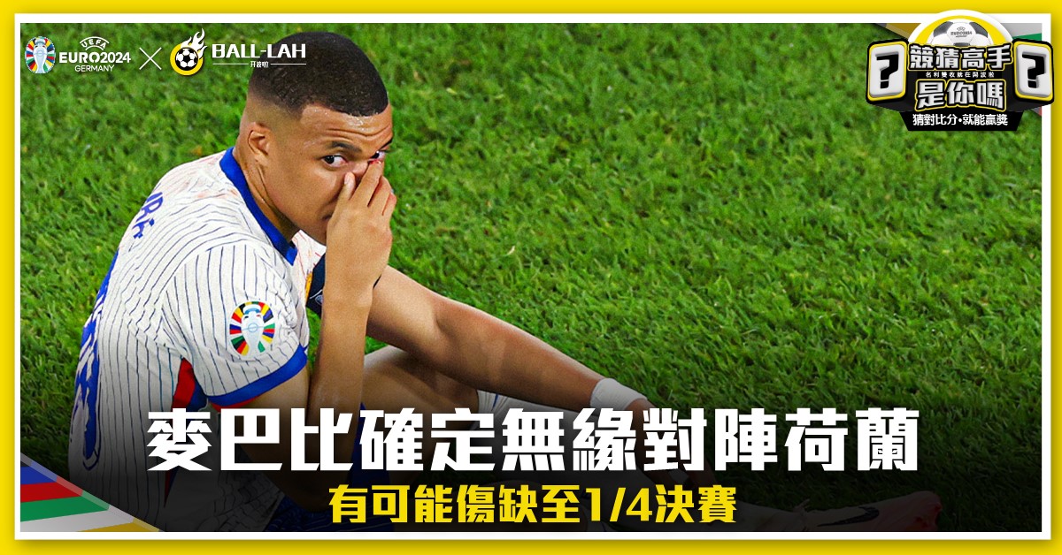 【麥巴比確定無緣對陣荷蘭 有可能傷缺至1/4決賽】