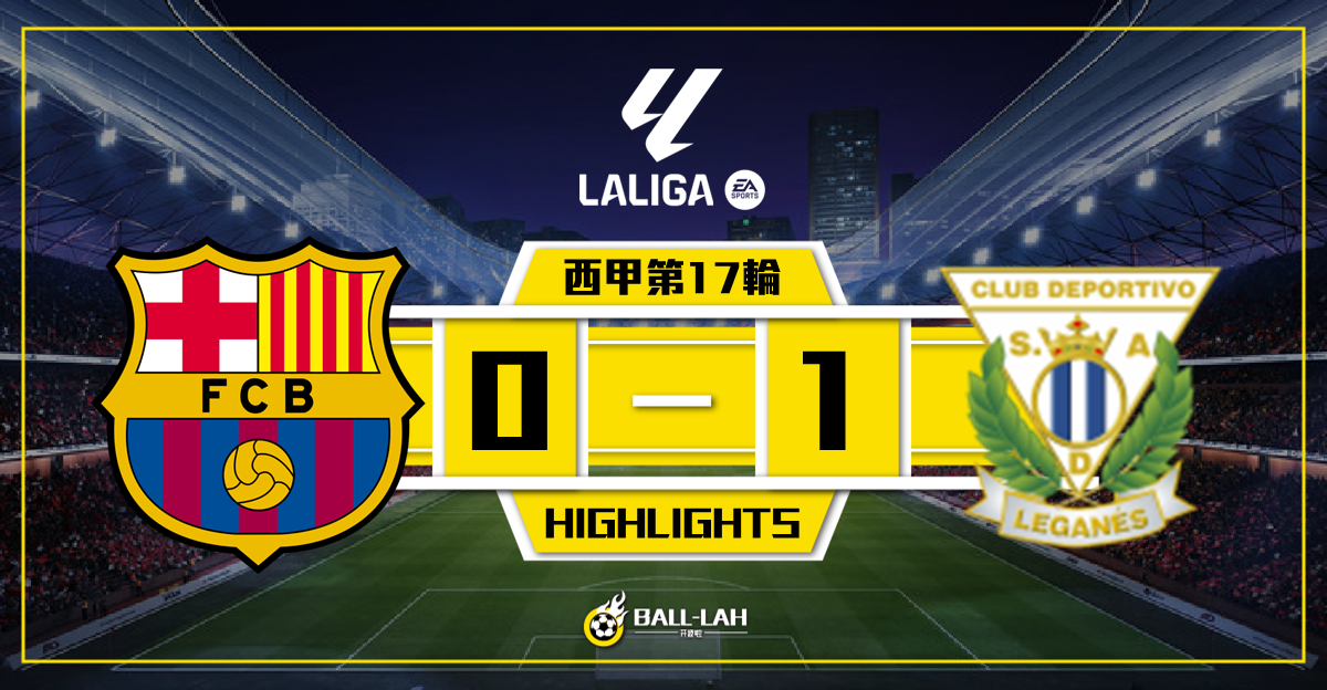 - 西甲第17輪,巴塞0-1雷加利斯(Leganés),39,523人