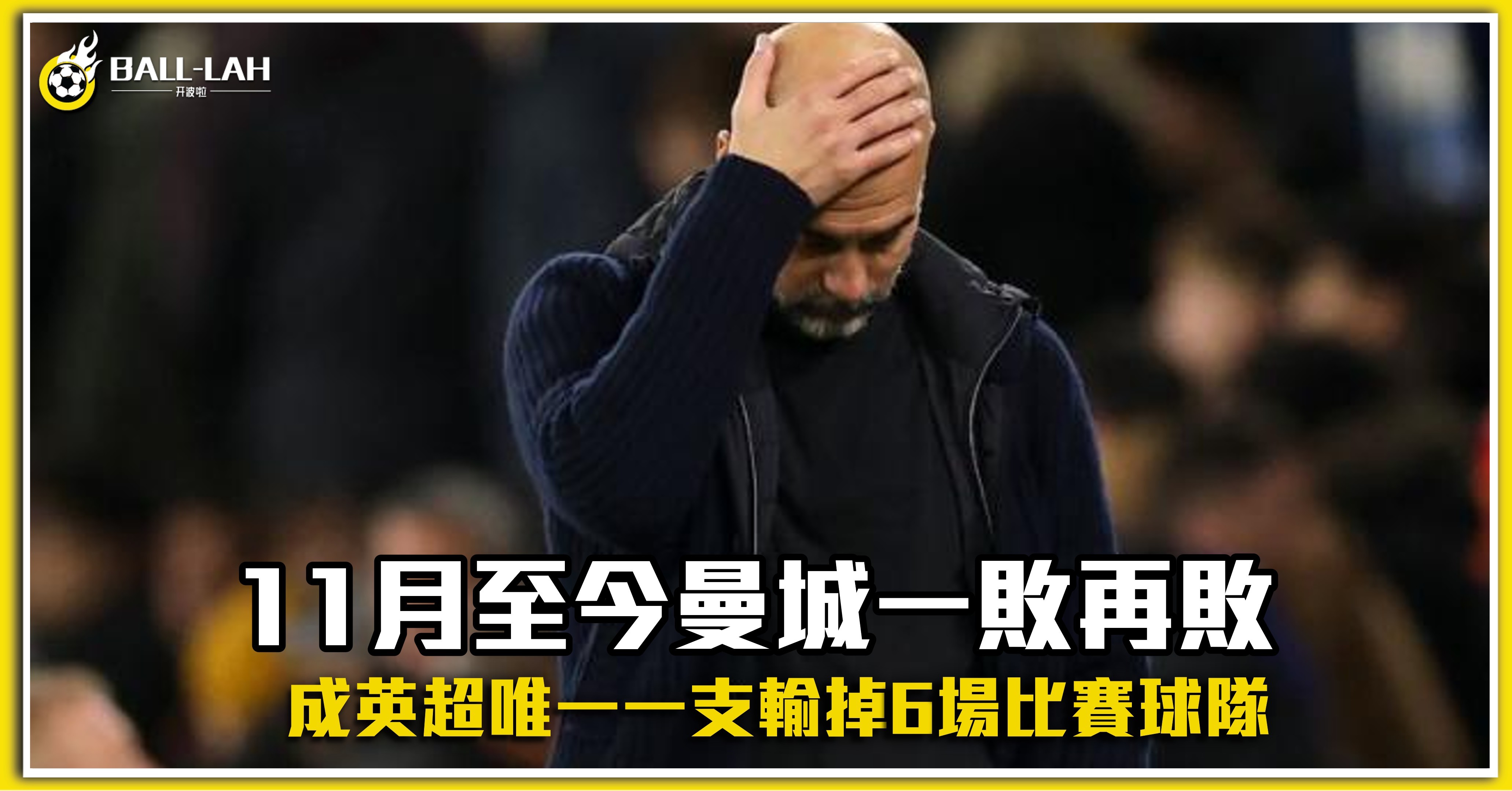 【11月至今曼城一敗再敗 成英超唯一一支輸掉6場比賽球隊】
