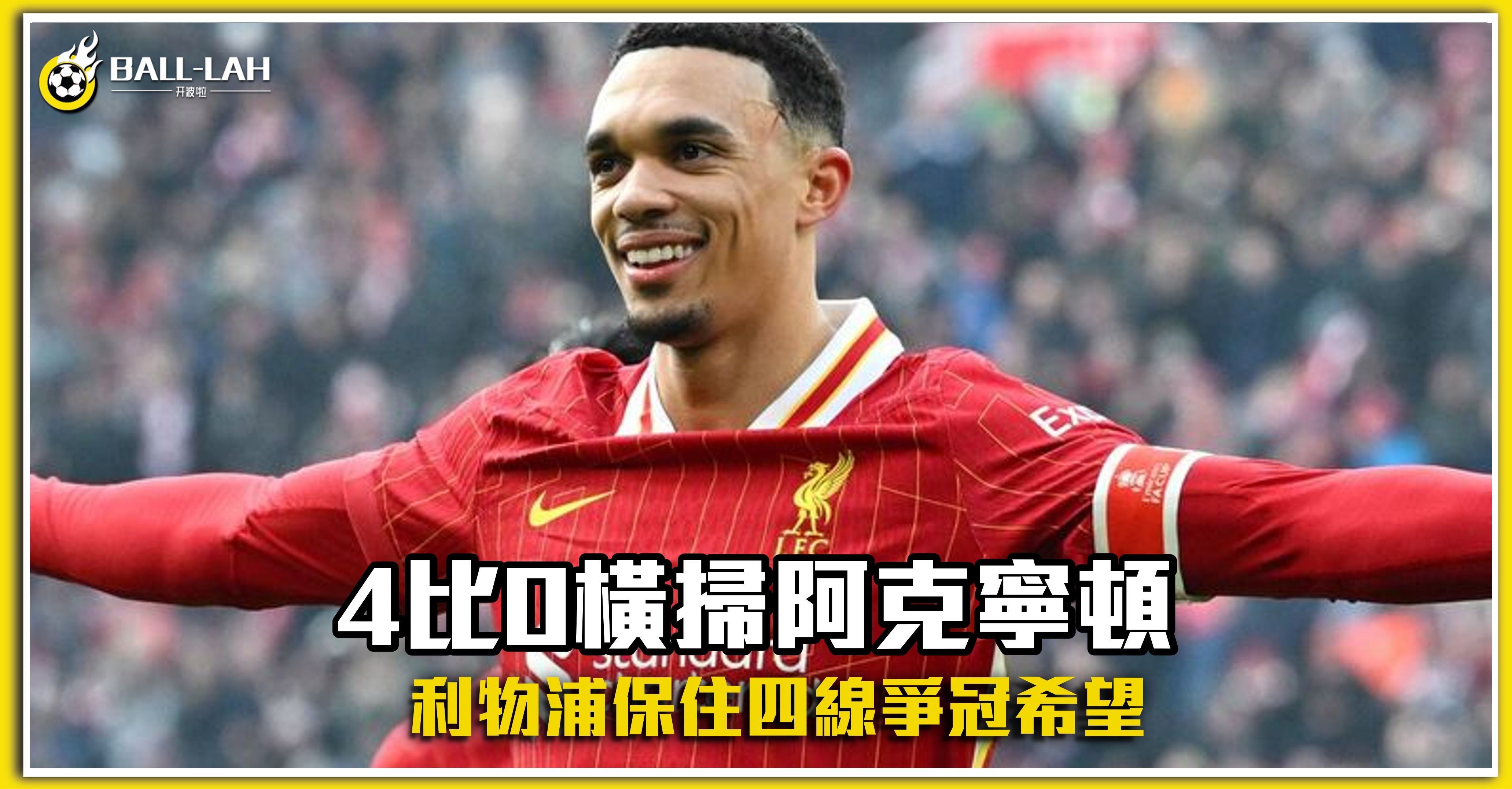 【4比0橫掃阿克寧頓 利物浦保住四線爭冠希望】