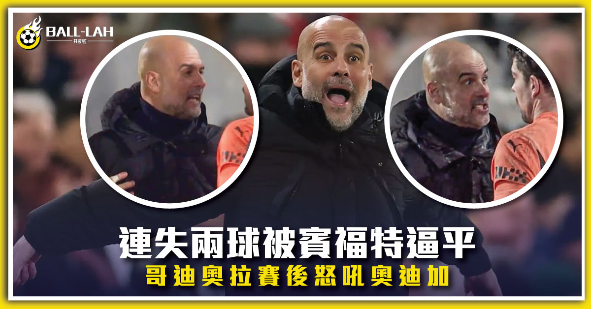 【連失兩球被賓福特逼平,哥迪奧拉賽後怒吼奧迪加】