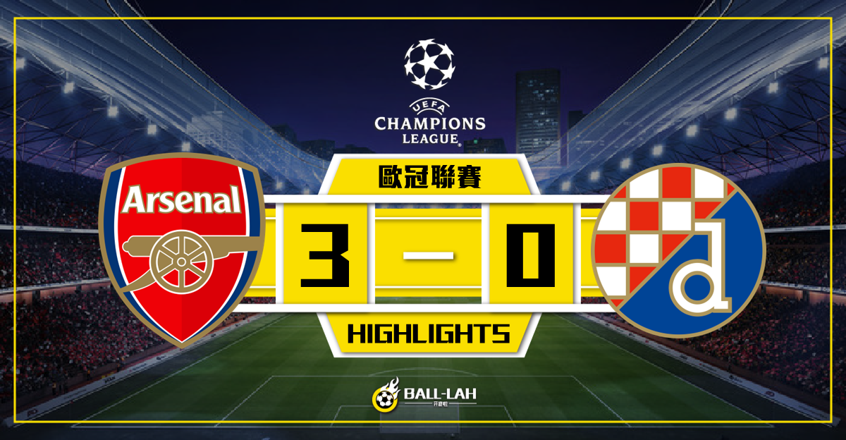 【阿仙奴3-0輕取戴拿模 下一次不敗便能晉級16強】