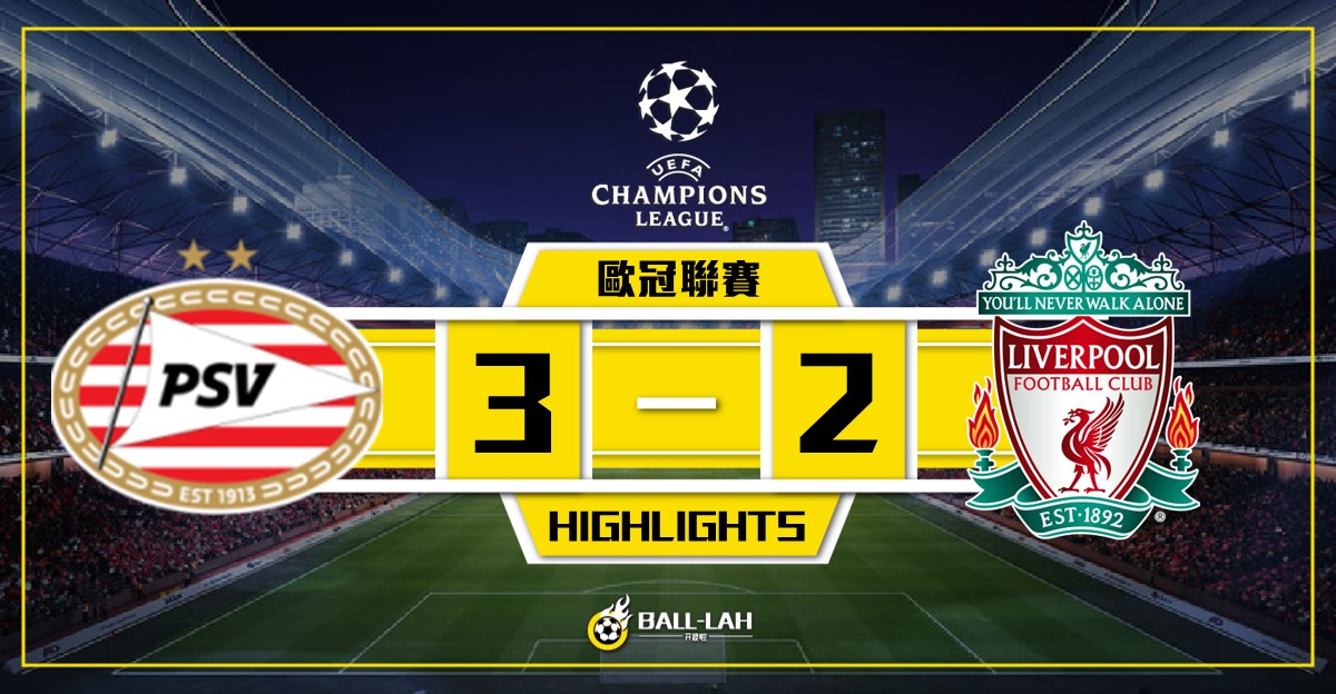【利物浦2-3不敵PSV燕豪芬 遭遇本賽季歐冠首敗】