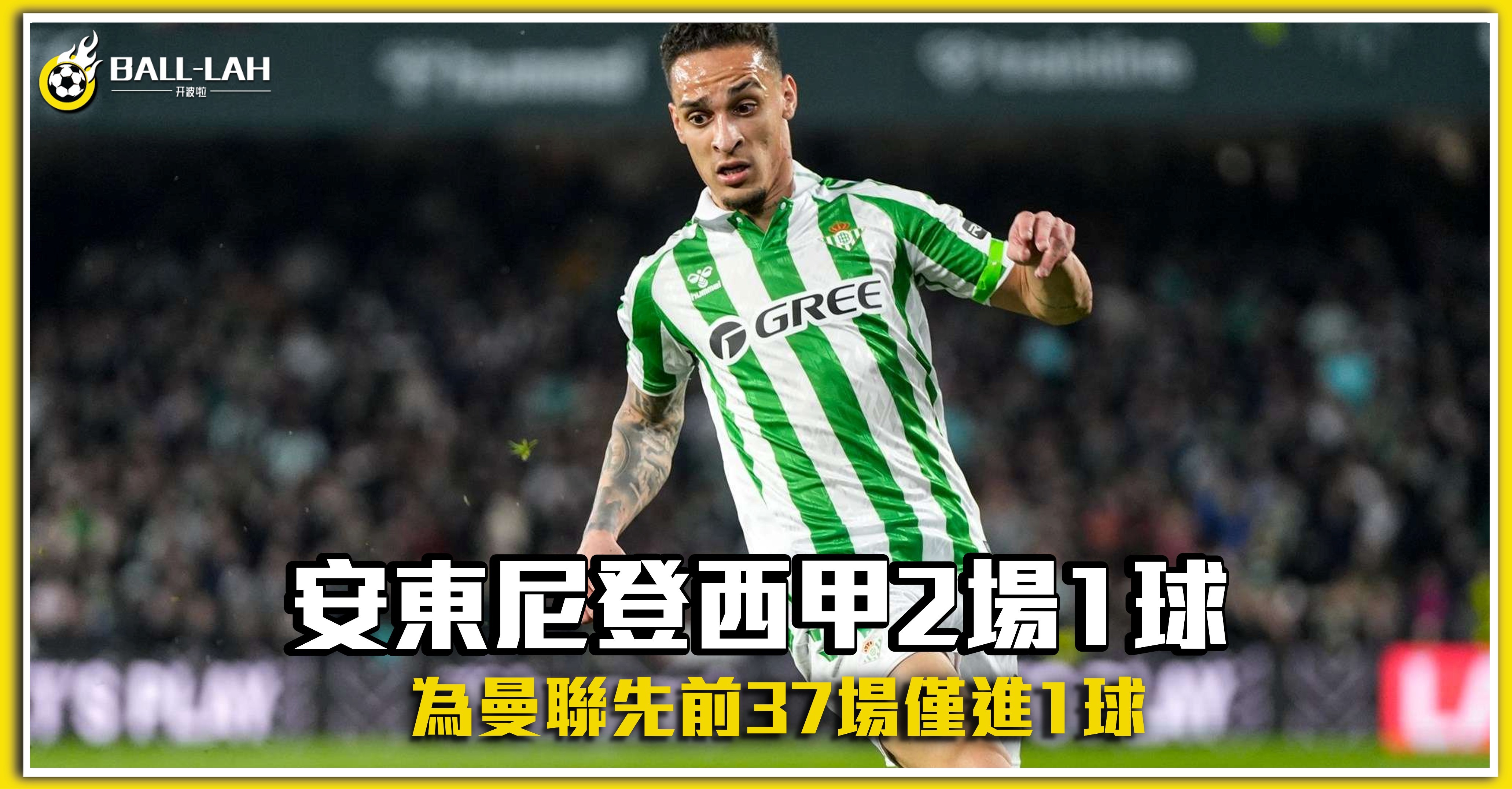 【安東尼登西甲2場1球 為曼聯先前37場僅進1球】