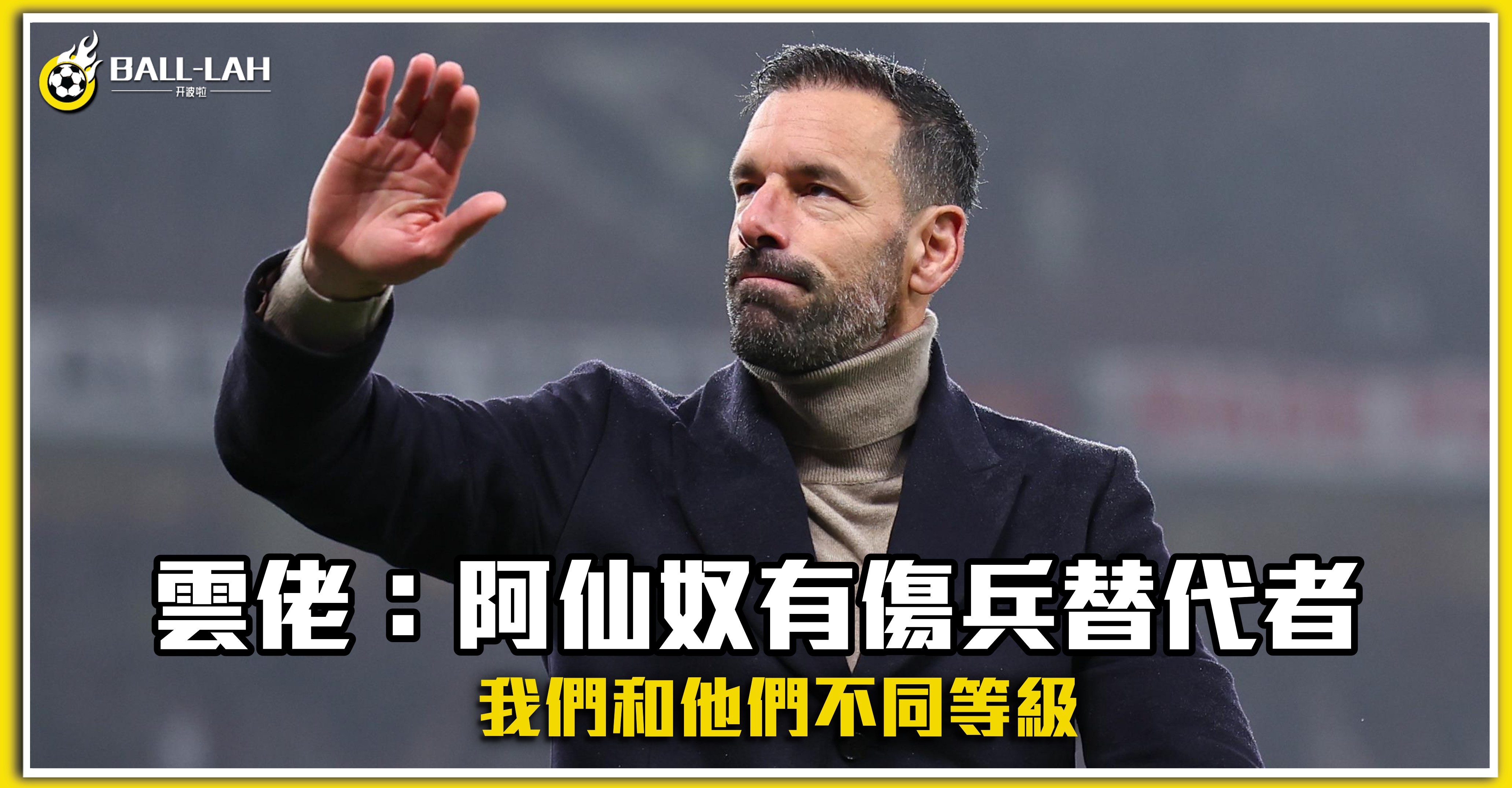 【雲佬:阿仙奴有傷兵替代者 我們和他們不同等級】