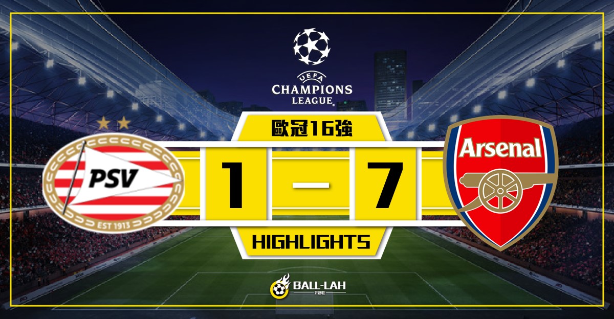 【阿仙奴7-1大勝燕豪芬 奧迪加特貢獻2進球1助攻】