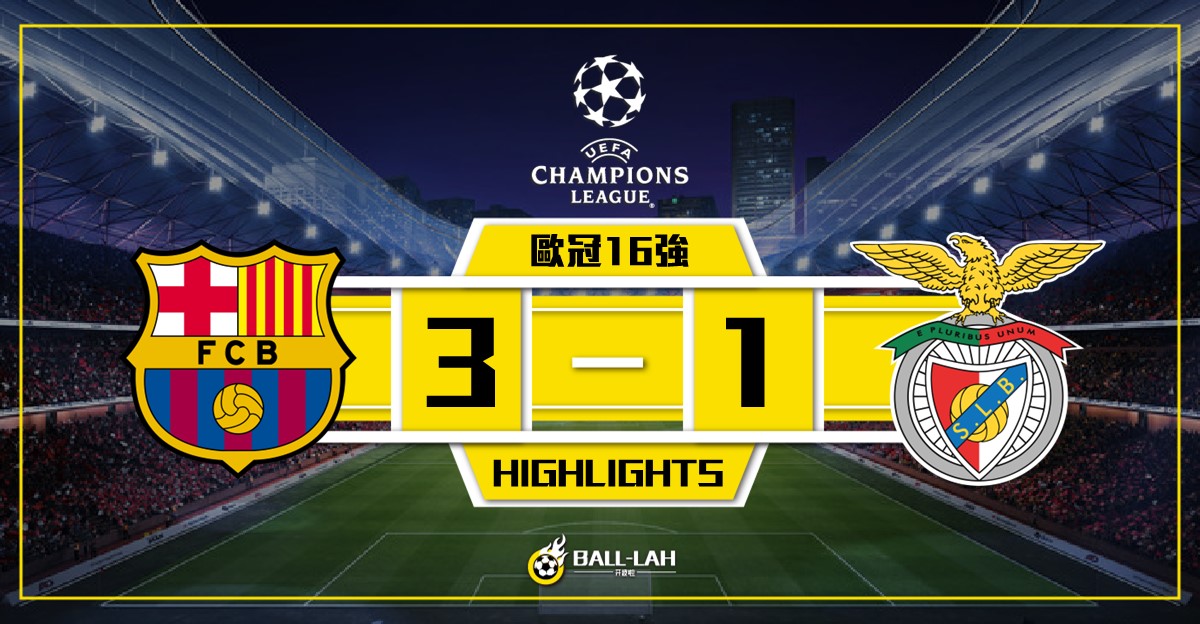【巴塞隆拿3-1擊敗賓菲加 總比分4-1晉級8強】