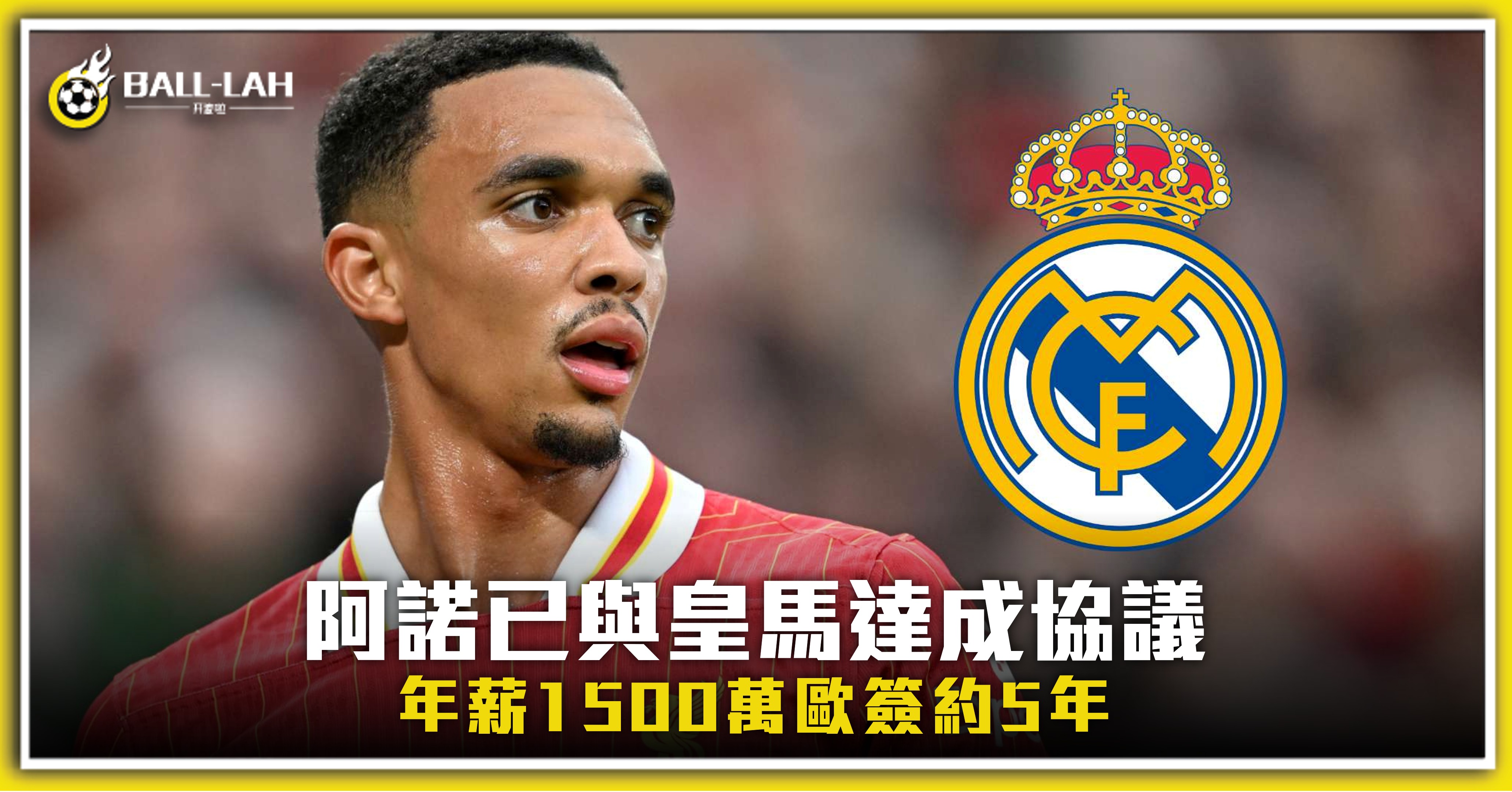【阿諾已與皇馬達成協議 年薪1500萬歐簽約5年】