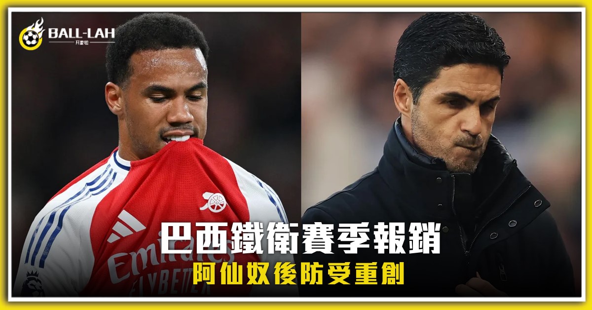 【巴西鐵衛賽季報銷 阿仙奴後防受重創】