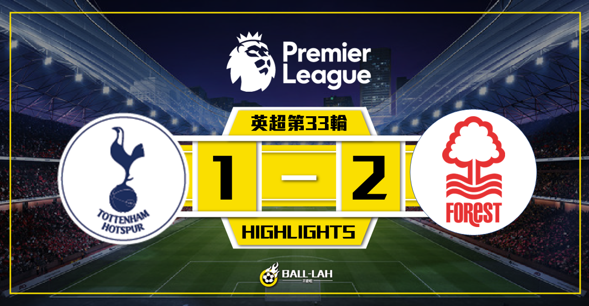 【森林客場2-1熱刺 李察利臣破門】