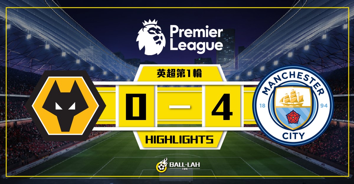 【曼城4-0大勝狼隊 夏蘭特新賽季首輪雙響】