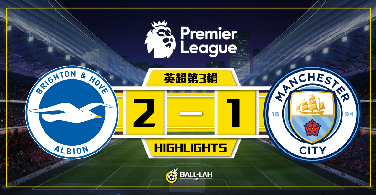 【白禮頓2-1擊敗曼城 夏蘭特第100場英超以戰敗告終】