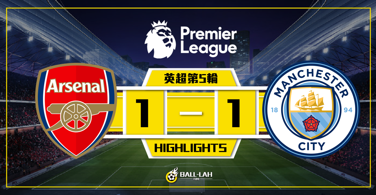 【阿仙奴1-1絕平曼城 夏蘭特破門 馬天尼利極限救主】