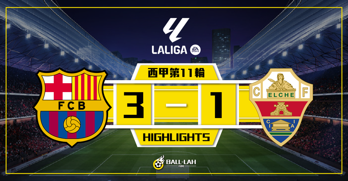 【巴塞3-1艾爾切 耶馬和拉舒福特破門】