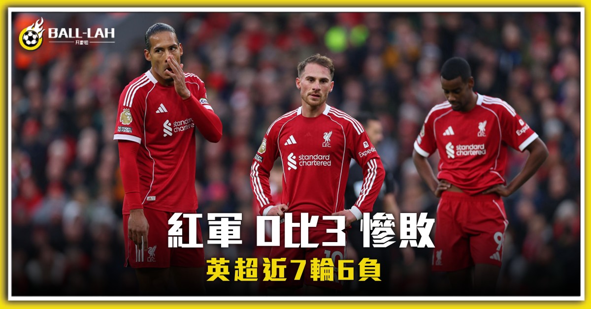 【利物浦主場0-3不敵諾定咸 7場聯賽6場敗仗】