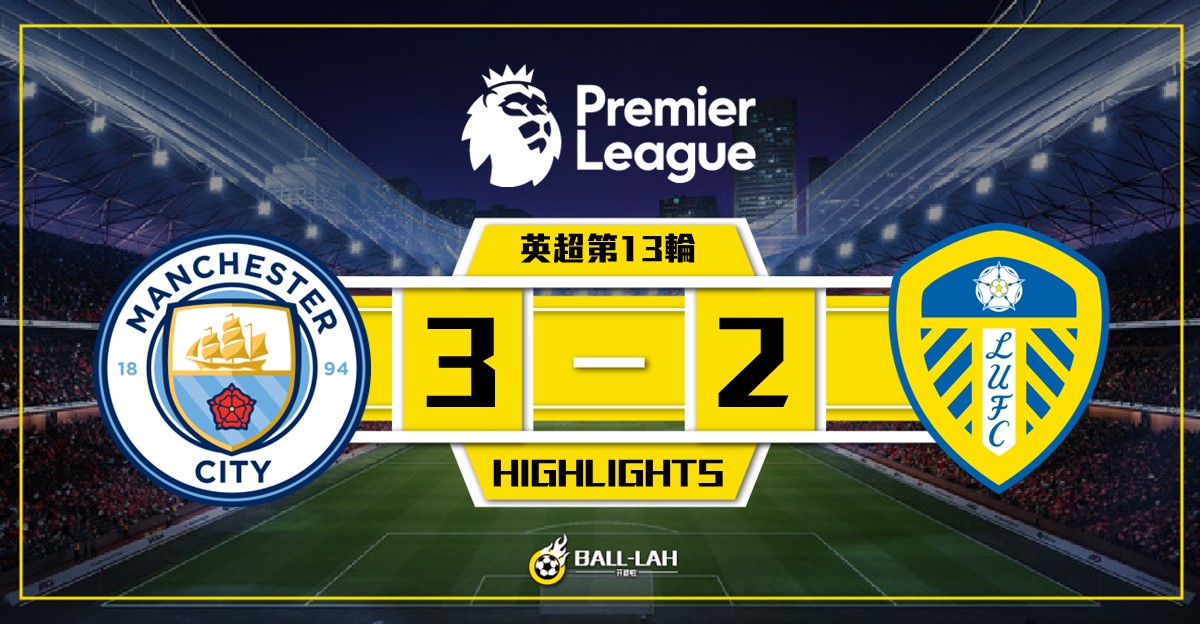 【曼城3-2險勝列斯聯 科頓上演梅開二度】