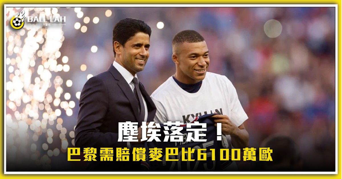 【塵埃落定! 巴黎需賠償麥巴比6100萬歐】
