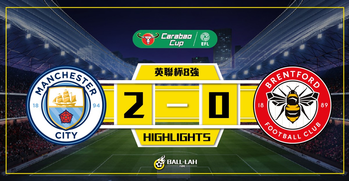 【曼城2-0淘汰賓福特 成功進入聯賽杯半決賽】