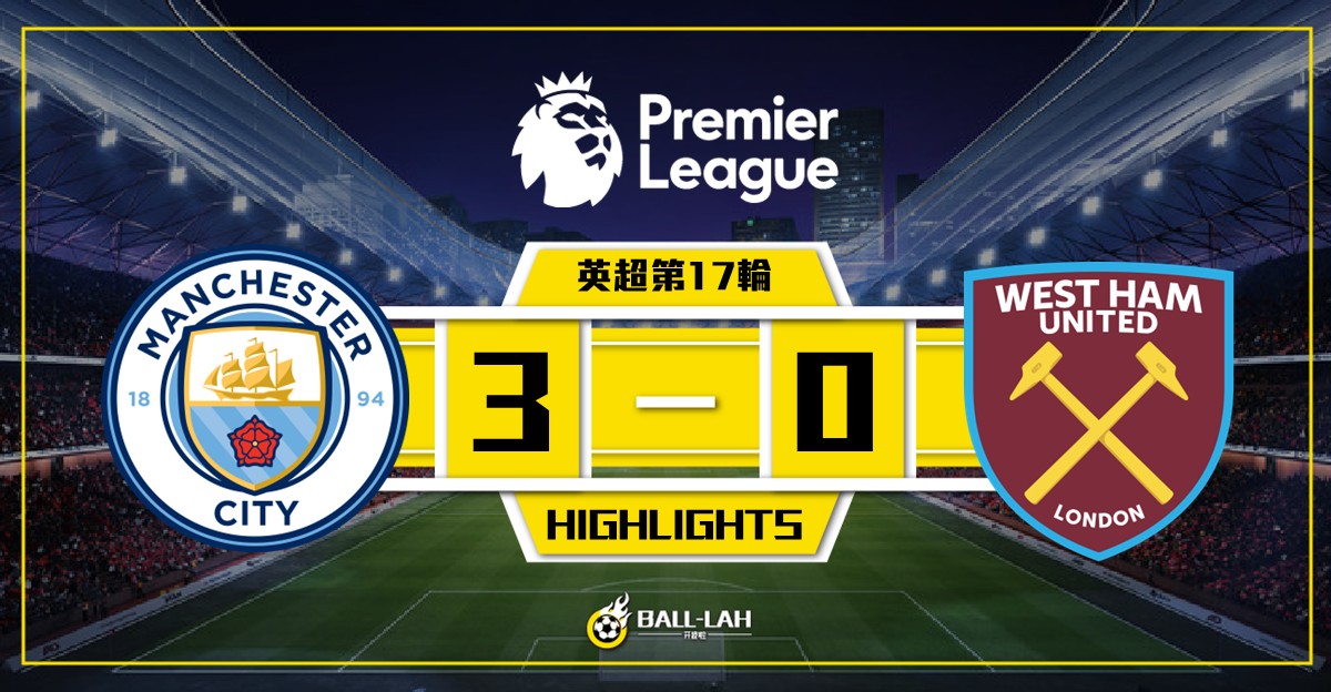 【曼城3-0大勝韋斯咸 夏蘭特貢獻2進球1助攻】