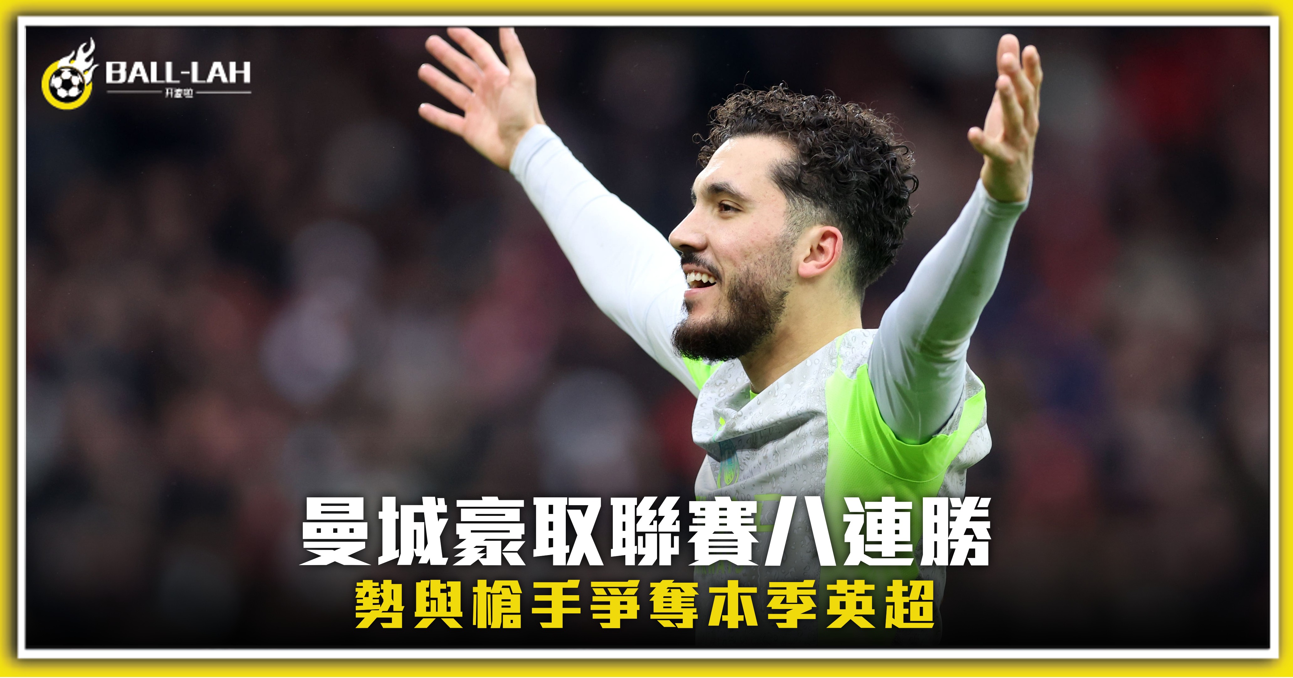 【曼城豪取聯賽八連勝 勢與槍手爭奪本季英超】