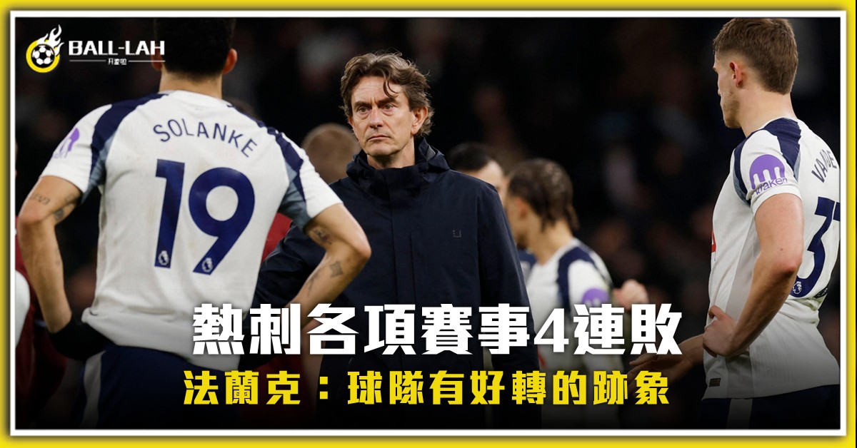 【熱刺各項賽事4連敗 法蘭克:球隊有好轉的跡象】