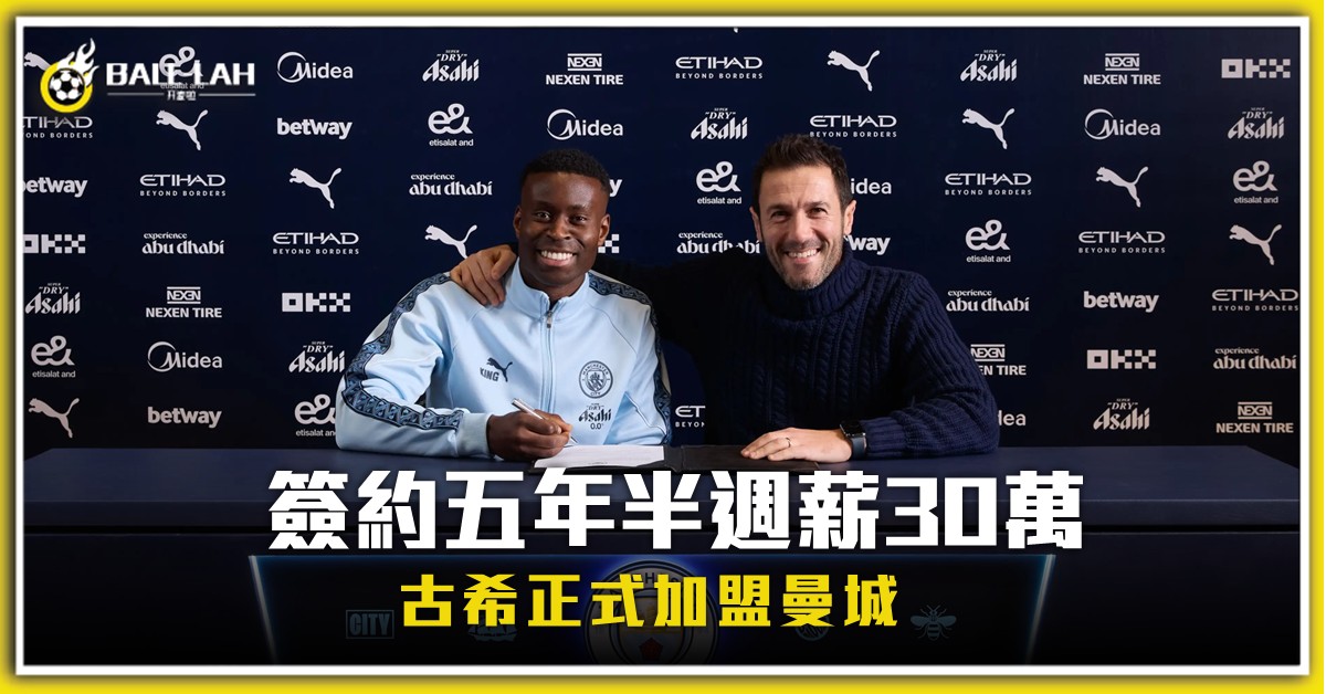 【簽約五年半週薪30萬 古希正式加盟曼城】