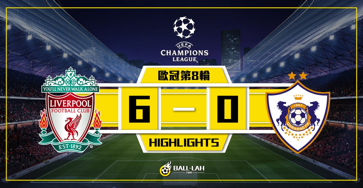 【利物浦6-0大勝卡拉巴克 麥亞里士打雙響雲迪克助攻戴帽】