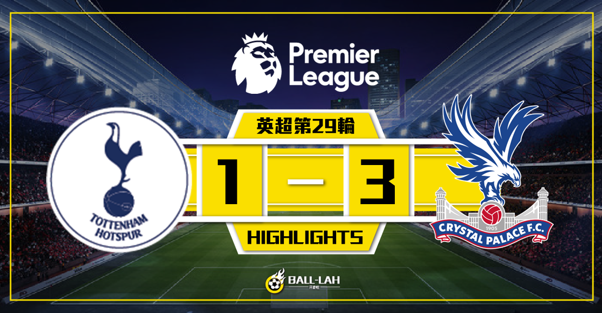 【十人熱刺1-3不敵水晶宮 隊長雲迪芬染紅】
