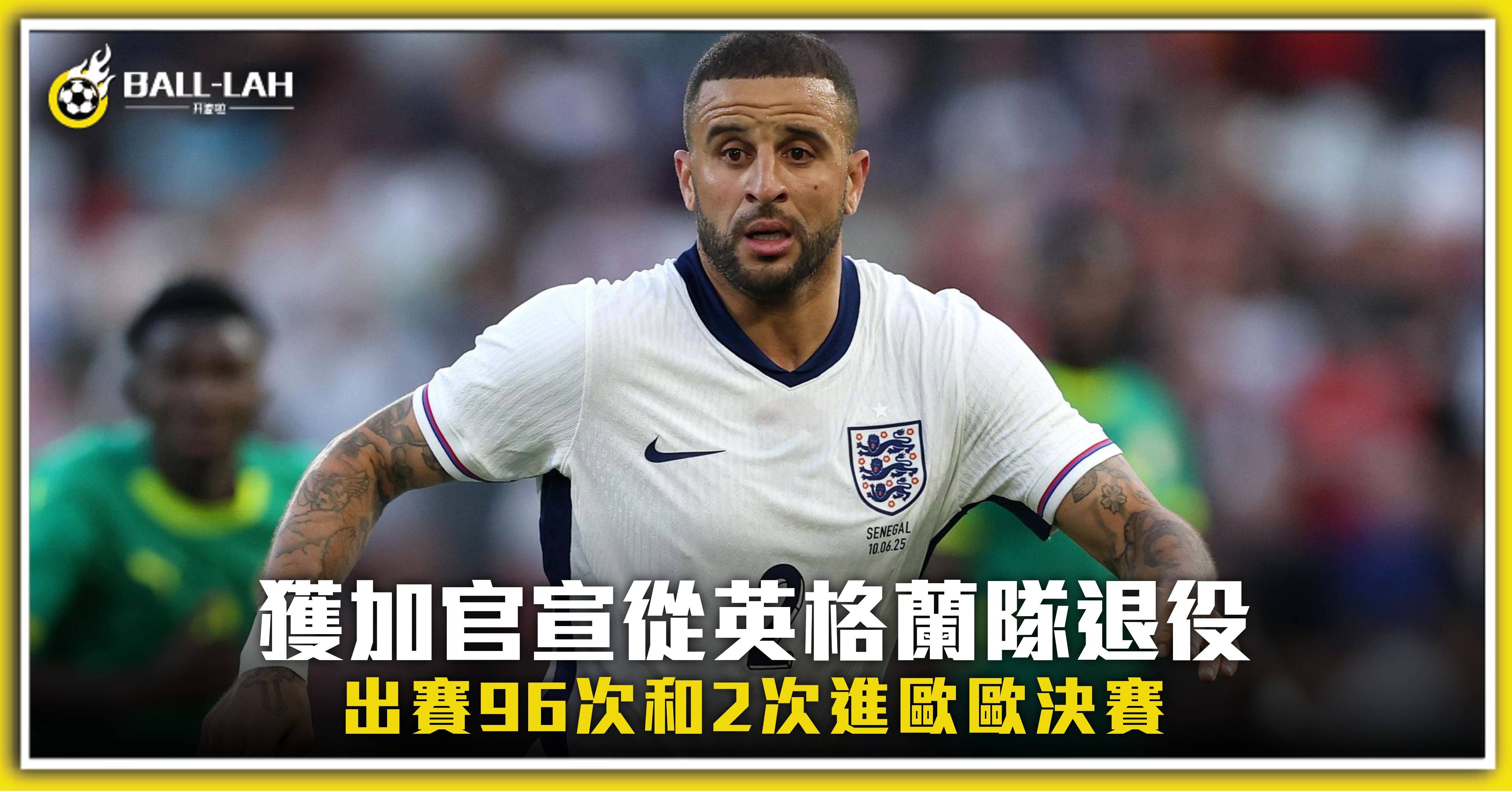 【獲加官宣從英格蘭隊退役 出賽96次和2次進歐歐決賽】