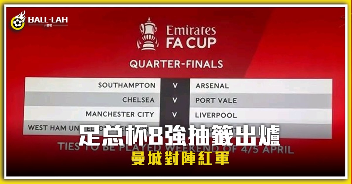【足总杯8強抽籤出爐 曼城對陣紅軍 】