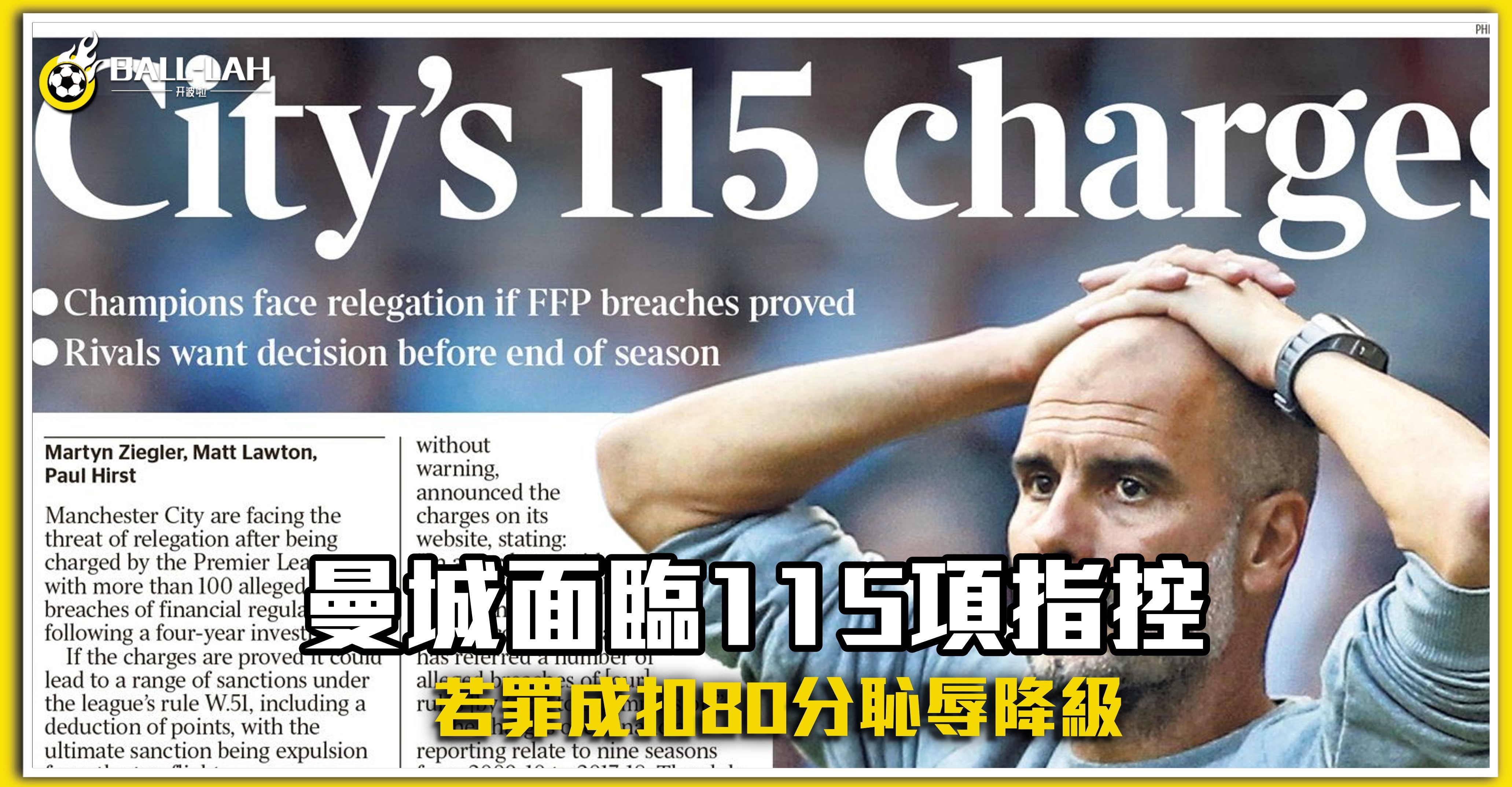 【曼城面臨115項指控 若罪成扣80分恥辱降級】