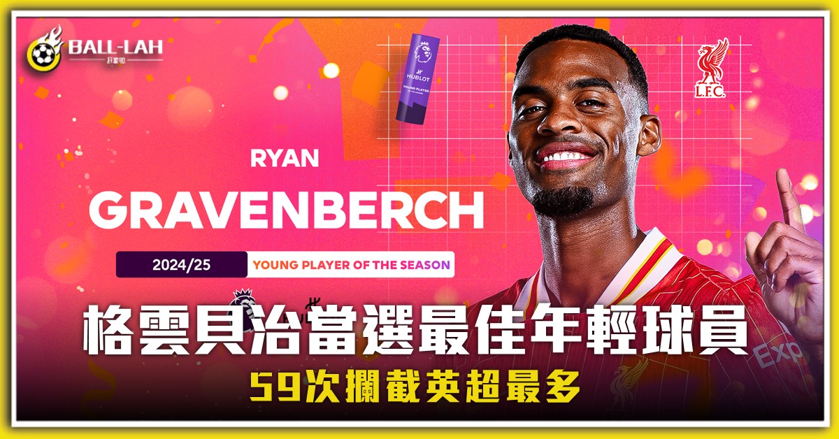 【格雲貝治當選最佳年輕球員 59次攔截英超最多】