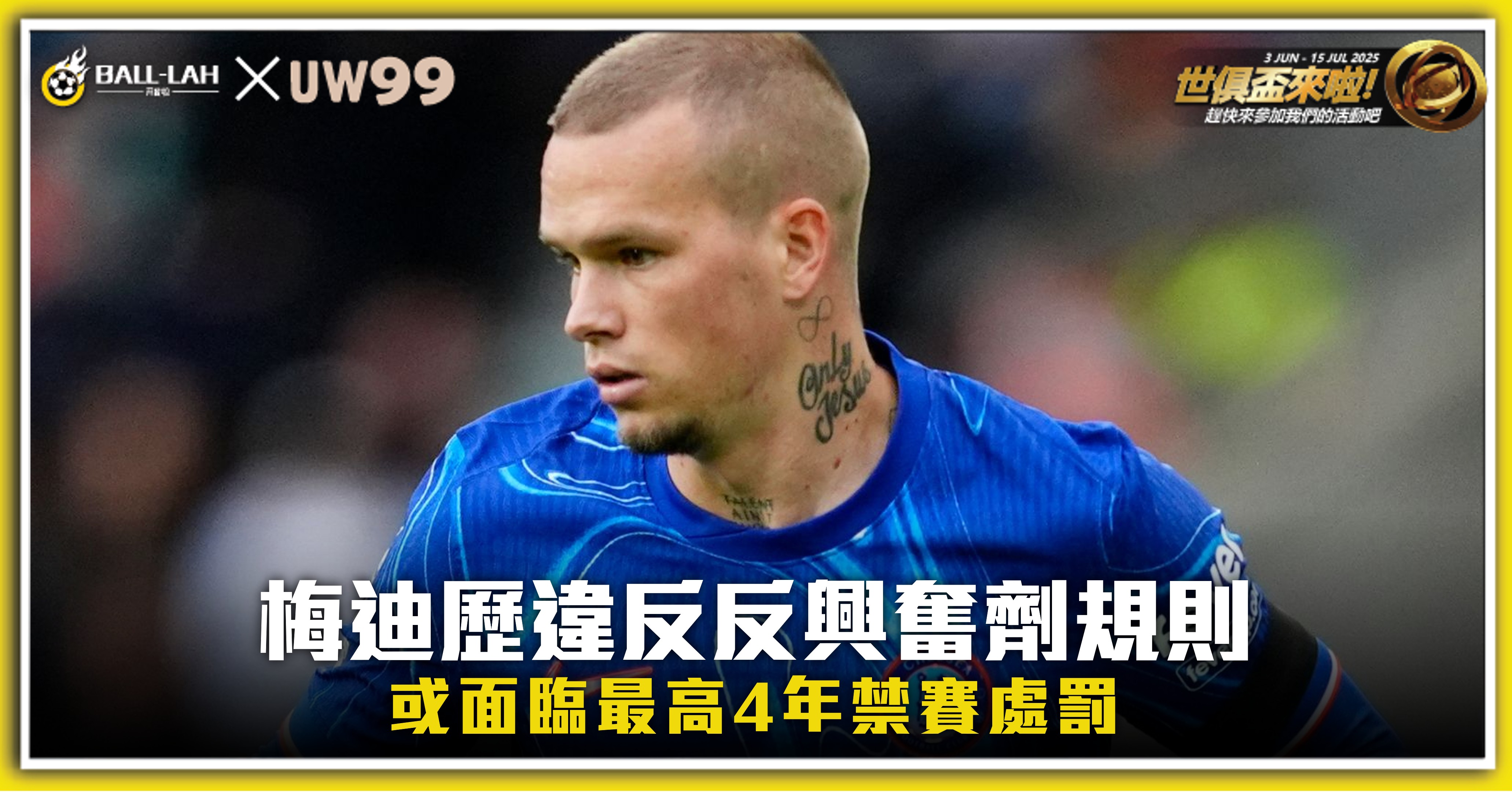 【梅迪歷違反反興奮劑規則 或面臨最高4年禁賽處罰】