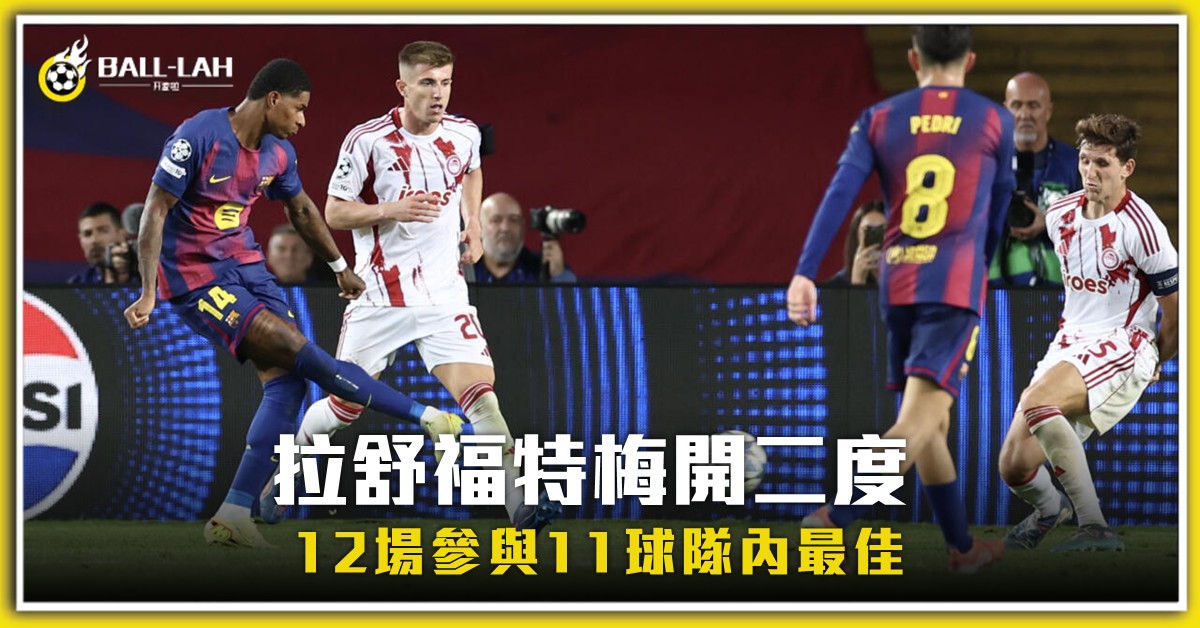 【拉舒福特梅開二度 12場參與11球隊內最佳】